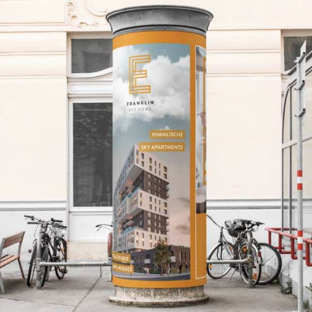 Besondere Präsenz für Objektwerbung zeigen großflächige Medien – als Citylight-Poster an frequentierten Plätzen oder als Gerüstbanner direkt an der Baustelle.