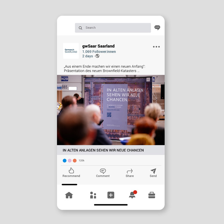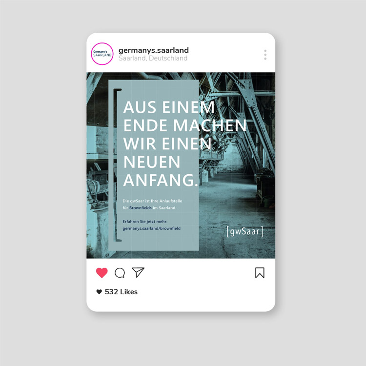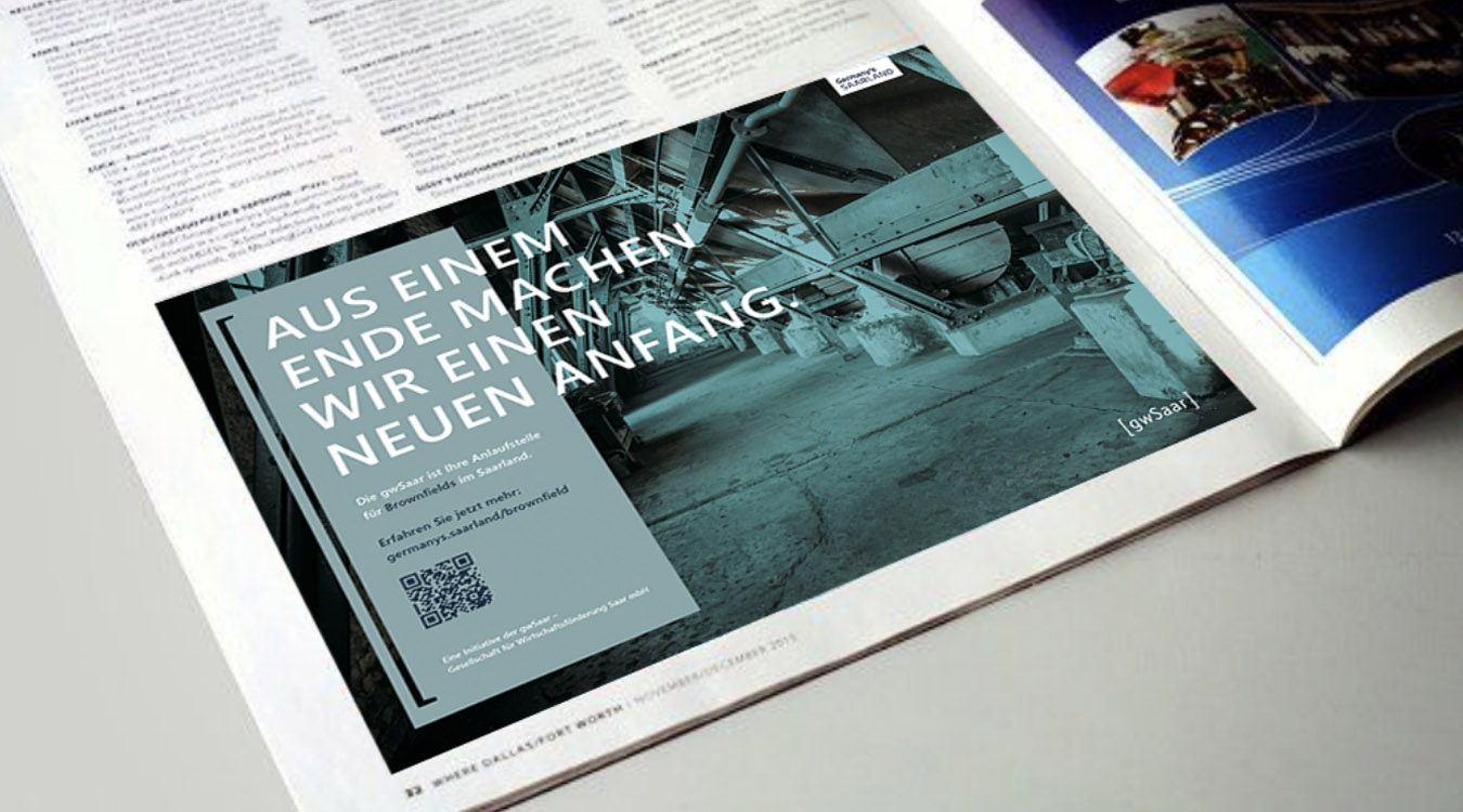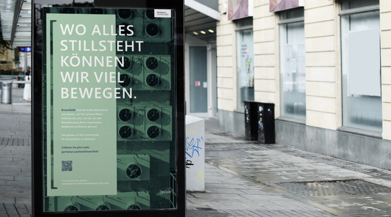 In Zusammenarbeit mit der saarländischen Wirtschaftsförderung, gwSaar, entwickelte STAUB eine aktivierende Kampagne zur Aufklärung und besseren Sichtbarkeit der Thematik „Brownfields”. Mit drei Motiven und einer spielerischen Headline-Mechanik wird das neue Brownfield-Kataster und die Rolle der gwSaar klar und übersichtlich in Szene gesetzt.